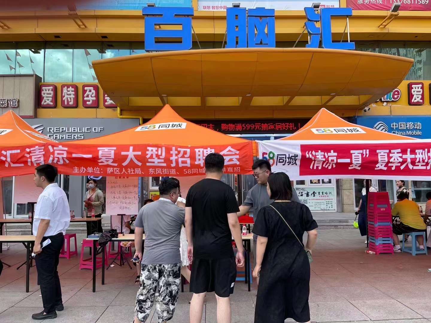7月10日上午,新村萬(wàn)達(dá)休閑廣場(chǎng)人流如潮。大慶市人社局和五八同城聯(lián)合舉辦的“清涼一夏”大型招聘會(huì)萬(wàn)達(dá)專(zhuān)場(chǎng)如火如荼進(jìn)行。