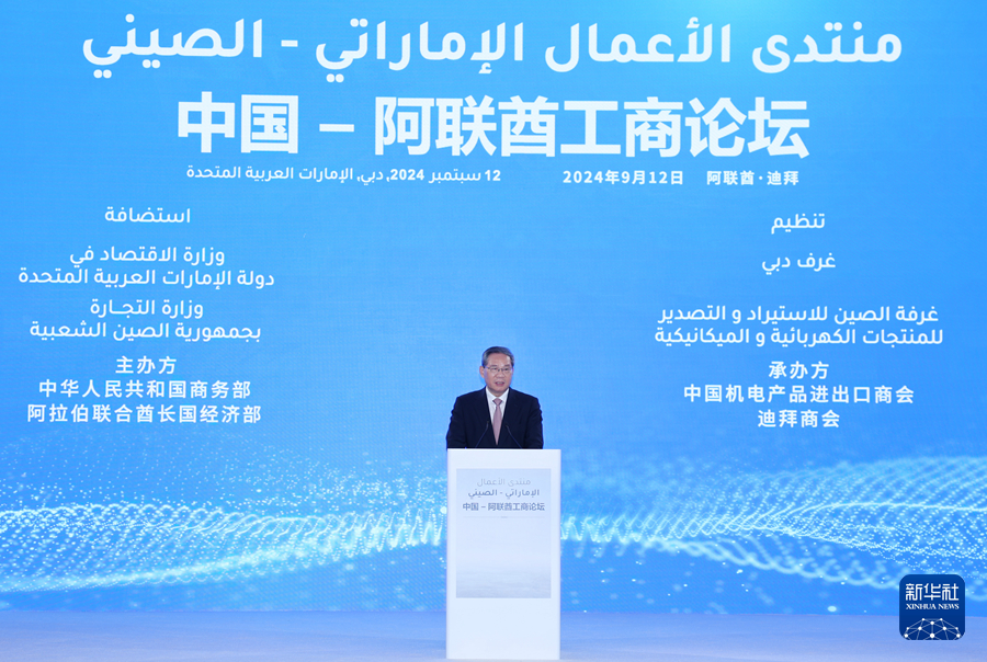 當(dāng)?shù)貢r(shí)間9月12日下午,國務(wù)院總理李強(qiáng)在迪拜出席中國-阿聯(lián)酋工商論壇并致辭。